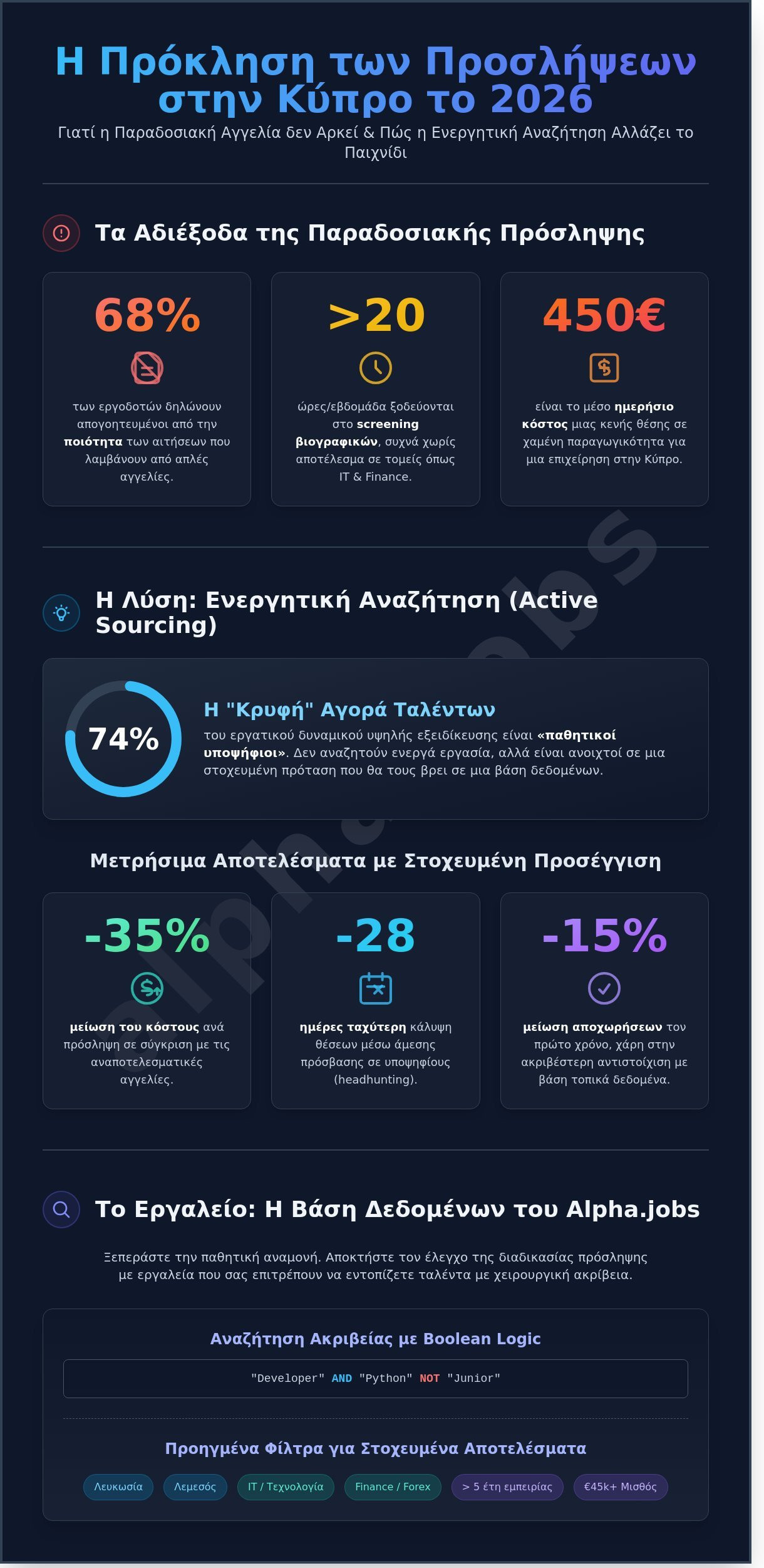 - Μάθετε γιατί η ενεργητική αναζήτηση (Active Sourcing) είναι η μόνη λύση για την αντιμετώπιση της έλλειψης δεξιοτήτων στην κυπριακή αγορά εργασίας το 2026.