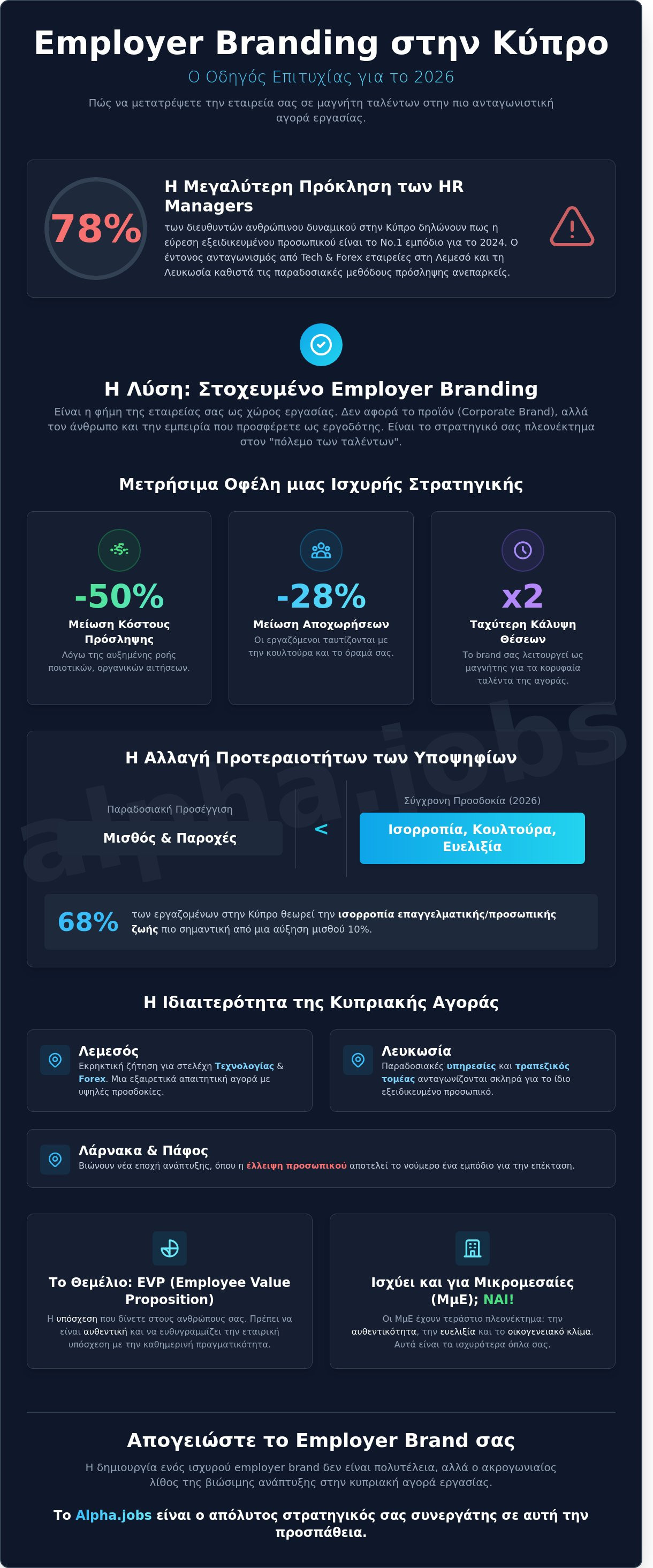 - Κατανοήστε τη σημασία του Employer Branding ως την κορυφαία προτεραιότητα για την προσέλκυση και διατήρηση ταλέντων στην Κύπρο το 2026.