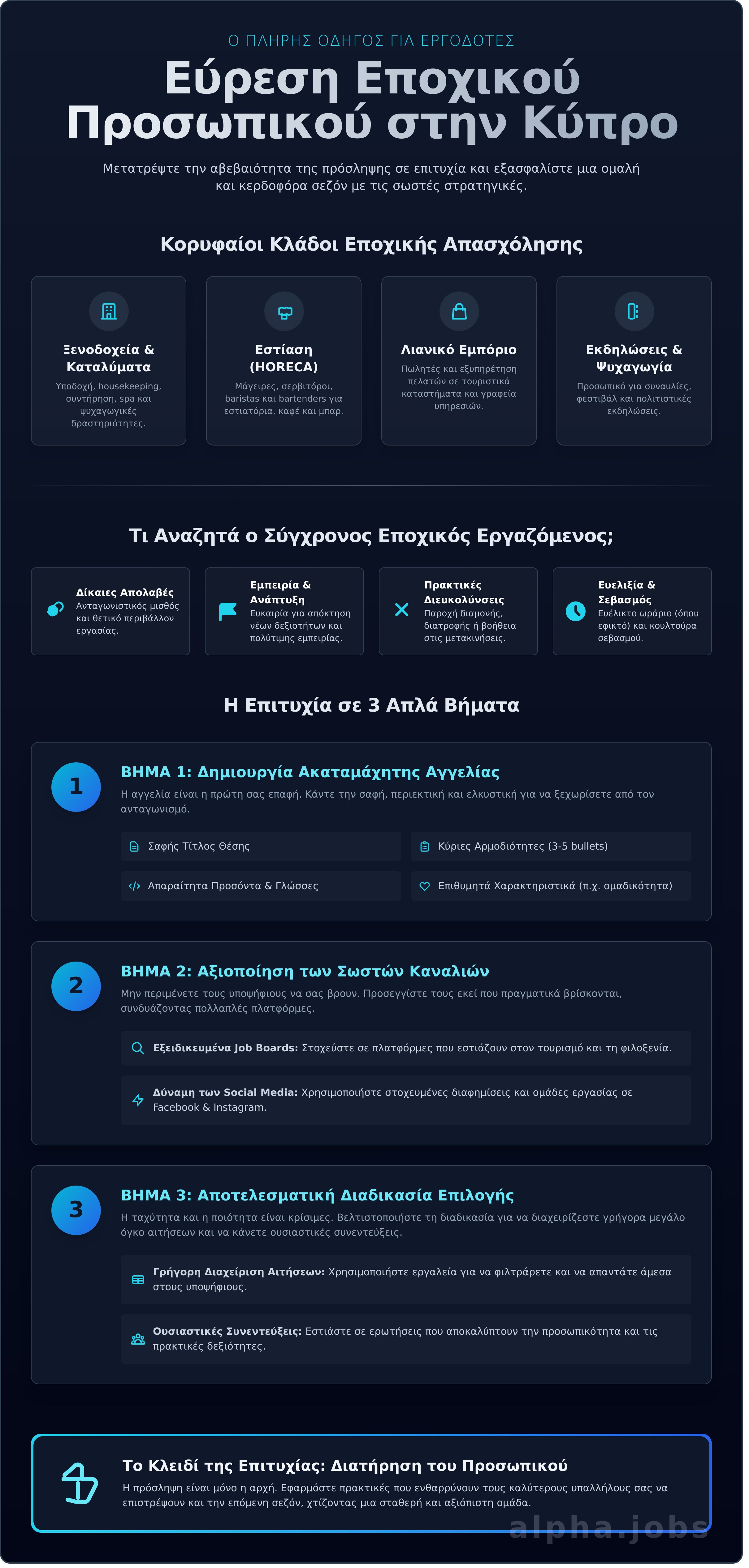 - Μάθετε πώς οι σωστές αγγελίες εργασίας, με σαφείς περιγραφές, αποτελούν το πρώτο βήμα για την επιτυχημένη ευρεση εποχικου προσωπικου κυπροσ.