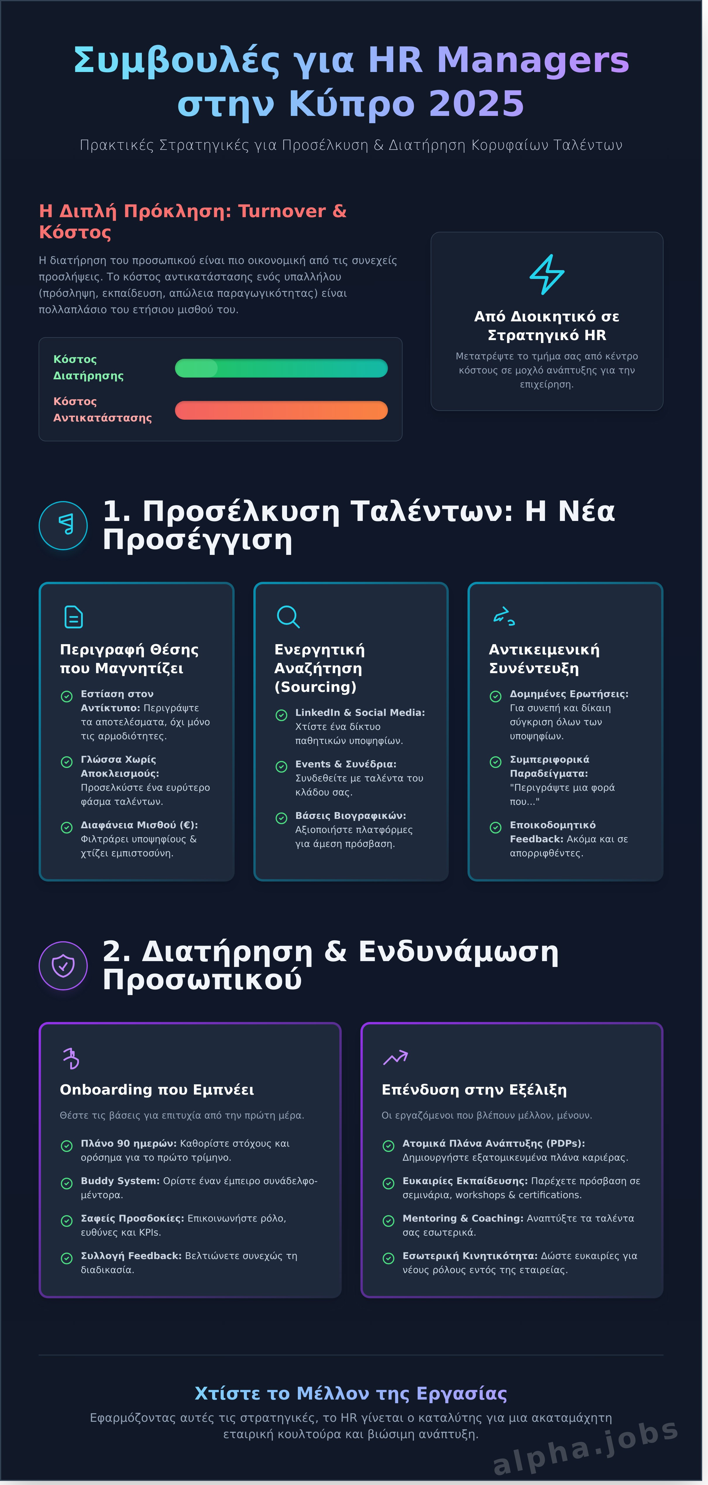 - Η διατήρηση του προσωπικού είναι πιο οικονομική από τις συνεχείς προσλήψεις. Ανακαλύψτε στρατηγικές, ξεκινώντας από το onboarding, καθώς οι σωστές συμβουλές για hr managers Κύπρος μπορούν να κρατήσουν τους καλύτερους υπαλλήλους σας αφοσιωμένους.