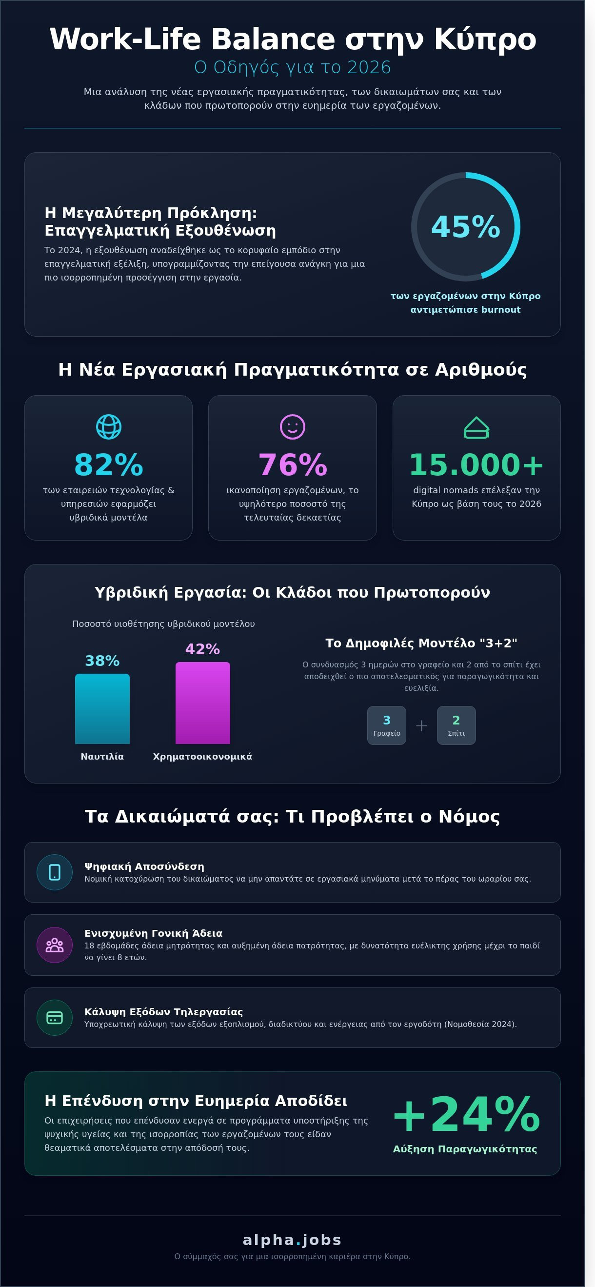 Σε αυτόν τον οδηγό θα ανακαλύψετε πώς να πετύχετε την ιδανική ισορροπία και το σωστό work life balance κυπροσ για το 2026, εκμεταλλευόμενοι τις ριζικές αλλαγές που φέρνει η νέα εποχή στην αγορά εργασίας. Θα μάθετε πώς να εντοπίζετε και να διεκδικείτε θέσεις με υβριδικά μοντέλα εργασίας, ενώ θα αναλύσουμε με απλά λόγια τα δικαιώματά σας με βάση την τελευταία κυπριακή νομοθεσία. Στη συνέχεια, θα σας παρουσιάσουμε τους επιλεγμένους εργοδότες που αναγνωρίζουν την αξία της ψυχικής υγείας και επενδύουν έμπρακτα στην ευημερία των ανθρώπων τους. Ετοιμαστείτε να αλλάξετε τον τρόπο που εργάζεστε, βάζοντας την ποιότητα ζωής σας σε πρώτο πλάνο.